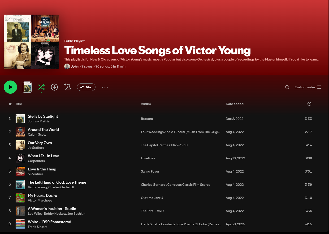Victor Young Spotify Playlist Content
